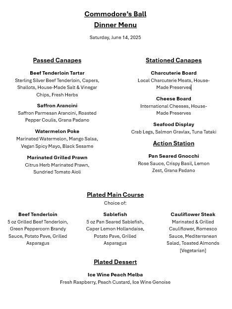 Commodore Michael Newcombe & Past Commodore Henry Harlos formally invites you to attend the 2025 Commodore’s Ball.