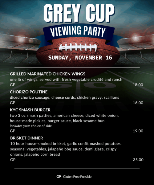 Reservations for the Member Lounge can be made online here, on the KYC app or by phoning 778-478-8215.